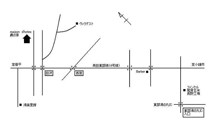 | 東京方面からお越しのお客様 | 上信越自動車道 「東部湯の丸IC」から5分です。ICからは下の地図をご利用下さい。 | |