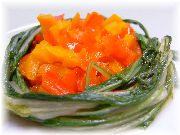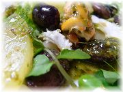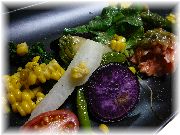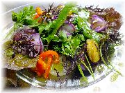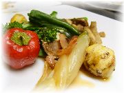 | ミズナのブレゼ | チョコと洋ナシのソルベ | 自家菜園の野菜たち | |