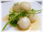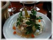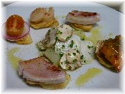 | 白子のポアレ | 白玉の大根おろしサラダ | サーモンのマリネ | ラビオリのバルサミコソース |