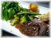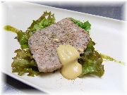 | 牛ステーキのバルサミコソース | ババロアリュバネ | オードブル盛り合わせ | 車麩のステーキ(オードブル) |