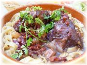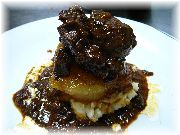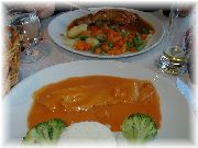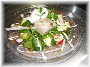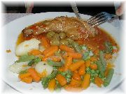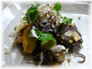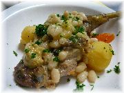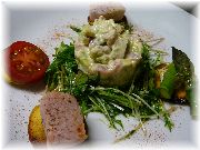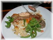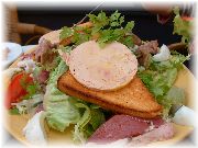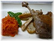 | これもカモのコンフィです。うちのオーナー夫人のお気に入りです。 | ビストロ・レ・ボンビスの、郷土料理をパリ風に仕上げたボリュームたっぷりの一品。 | これまたビストロ・レ・ボンビスで、私達の目標になる料理でした。 | ヴェルサイユ宮殿の近くのレストランでのランチ。店の名前忘れましたが、ここは行ってはいけません。やはり観光客しか来ない店は注意です。 |