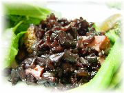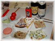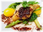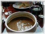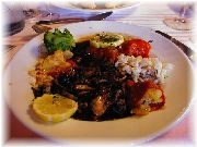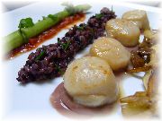 | オーベルジュ・エチェゴリーの豚の血を使った料理。ちょっと癖がありますが、バスク地方の伝統料理です。 | これはイカスミを使った料理だったような気がします。ガツンと来ます。 | シャンゼリゼ通りから少し入ったところにひっそりと店を構えていた、ノルマンディー地方料理のラフリオレのパンは最高にうまかった! | モンパルナス駅近くの、シノワズリ(中華のデリカテッセン)の店で昼食を食べました。味付けは中華というよりむしろフランス料理でした。 |