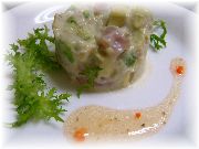 | マグロとアボガドのタルタル | カボチャのミルフィーユ | レンコンの寒天寄せ白ワインソース | |