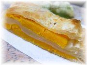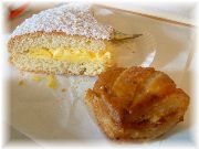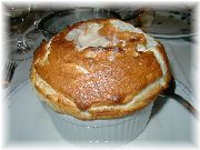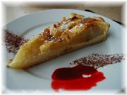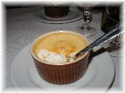 | ル・スフレのスフレ・グランマルニエ風味。この店は面白くて、オードブルからメイン、デセールまですべてスフレのコースがあります。面白半分で私だけチャレンジしましたが、・・・。日本人にはきつい!お勧めしません。 | ヴァンヴ蚤の市の近くのブラッスリーのりんごのタルトノルマンディー。この店のコースは値段の割にはボリュームがあって大満足! | オフィス街にある、オ・バビロンヌのプリン。何てことは無い、家庭の味。 |