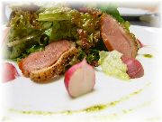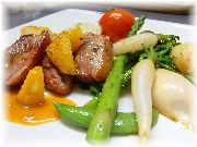 | 鴨肉のサラダ | 鹿肉のソテーコニャックソース | 旬の野菜の付け合せ | ホタテのポアレ |