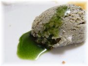 | ビストロ・レ・ボンビスの奥に見えるのがアリババ。ラムがものすごく効いていてgood。手前はフローマージュ・オ・ザマンド。 | オーベルジュ・エチェゴリーのアルコールたっぷり(コアントローか?)みかんのスープデセール。 | オーベルジュ・エチェゴリーのガトーバスク。うわさには聞いていましたが表面が真っ黒!日本で出したら怒られそうなくらい。素朴で力強い! |