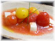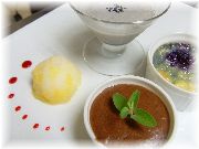 | トマトのムース | 完熟トマトのマリネ | グランマルニエのクレムブリュレ | グレープフルーツのジュレ |