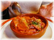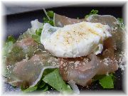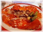 | ビストロ・レ・ボンビスのオードブル。すいません、何か忘れました。 | ビストロ・レ・ボンビスのレンズマメのスープ。それにしてもフランス人は豆が好き。 | オーベルジュ・エチェゴリーのハム。素朴な味、生産地の美しい風景が目に浮かびます。 | オーベルジュ・エチェゴリーの定番料理の一つ、ピペラード。フランスのバスク地方のとても力強いお母さんの味がしました。 |