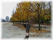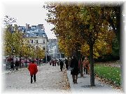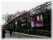 | ルクセンブルク宮殿を正面に眺めながらベンチに座って買い込んだスイーツ(お菓子)を食べました。足元にすずめが寄ってくるのでおすそ分け。 | ここもルクセンブルク公園です。かなり広いです。夕方になると会社帰りに散歩する人、デートするカップル、ジョギングする老若男女で賑やかになります。 | この時期は紅葉が美しい季節でしたので、歩くにはよかったです。 | ルクセンブルク公園の鉄格子の塀にはちょうど中国の写真展で多くの中国を紹介した写真が展示されており、パリ市民は熱心に眺めておりました。 |