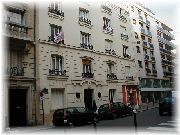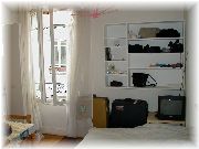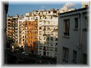 | この建物の4Fに我々の借りたアパートがあります。最寄のメトロの駅はCONVENTIONです。 | アパートの窓から外を見た風景です。このあたりは治安の良い閑静な住宅街と言われています。 | 部屋は1Kです。洋服たんすにベッド2つと、ダイニングテーブルセットがありました。2人には十分です。 | ゴミは中庭のゴミ棄て用BOXの中へ。 |