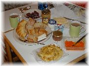 | エレベーターもありますが、ほとんど階段を使いました。 | 朝食は部屋で食べる事にしており、パンは毎朝近くのパン屋に買いに行きます。近所には何箇所もパン屋があり、今日はどこ行くか考えるのも楽しい。 | バゲットトラディショナルがうまい!パリの近くの農家のおばあさんが作っている新鮮バターがあれば何もいらないんです。エシレのバターがまずく思える。 | これは夜食。たまには甘いパンやタルトも食べました。サンジェルマンデプレでは夜もマルシェが出ているので、ぶらっと歩くのも楽しいですよ。 |