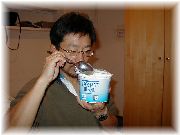 | 農の家の前のペンションを始める前は料理に関しては素人だった私達を徹底的に特訓してくださったのは、以前京都で「ヌーヴェル・フォンティーヌ」という高級フランス料理店のオーナーシェフの多々内先生です。先生は明治大学仏文科を出られ、パリで商社にお勤めされておりましたが、パリの大学の食堂で食べたフランス料理のおいしさにいたく感動され、この道で生きてゆくことを決心されたそうです。非常に研究熱心でこだわりの人ですので、フランス修行中の休日は必ずレストランを食べ歩きされ、やがてフランス中の評判のレストランほとんどを制覇されたすごい勉強家です。また、ル・コルドンブルー料理学校パリ校の、初めての日本人インストラクターでした。先生の教えは、「フランス料理はとにかく味!味!味!」でした。盛り付けはその次。「いい料理はまず香りを鼻で嗅いで楽しませ、次に口で食べて楽しませる。おいしくなければフランス料理でない!」と、いつもおっしゃっていました。味付けに関してはとても厳しかったですが、とても熱心で親切な紳士でした。まだお若い頃、某国領事館のお抱えシェフに推薦されたそうですが、自分のお店を持つのが夢だったということでお断りされたそうです。フランス菓子の「イデミ スギノ」さんのオーナー、「オーボンヴュータン」さんのオーナーとは親友らしいです。こんなに素敵な先生は現在熱海にお住いです。ご自宅で少人数制の料理教室をやっておられます。のんびり屋で出来の悪い私達ですが、一応先生の生徒の一人です。何とか山奥で元気にやっております。まだまだ、これからもずっと教えて頂きたい、永遠の素晴らしい師匠です。また、田舎暮らしには料理は重要です。必須科目といっても良いでしょう。正しい料理法を習得することは大きな財産です。”「食」を自分のスタイルにコントロールする” | ||