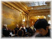 | コンコルド広場の、モンブランが有名なアンジェリーナ。勇んで食べたが・・・、ん!?あまり感動は無く、有名すぎているせいか全く面白くなかった。 | 店内がものすごい活気!とても騒がしい店。家族で経営しているとても気さくで温かみのあるオ・バビロンヌ。 | パリの11月は車山のこの季節よりも寒いのです!この日もとても寒かったので、マイアパートのあるメトロの駅を降りたらすぐに近くのカフェにて暖をとりました。 | ポルト・デ・ヴァンヴの駅の近くにあったブラッスリーです。ここは大変お勧めですが、残念ながら店の名前憶えていません。お腹が空いたらここ!って感じです。 |