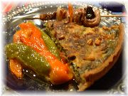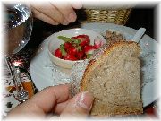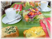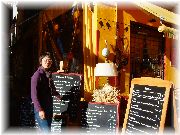 | イエールの旧市街地入口あたりにある、若いお母さんが切り盛りしていたパウンドのレストラン。オードブルがサラダ、メインは野菜のパウンド、デセールは色々なパウンドケーキ。日替わりで中の野菜が替わります。 | ショーウインドーにはその日のメインとデセールのパウンド数種類が、大きな型で焼かれたのがデーンとディスプレーされていました。この日は残りわずかになっていました。ランチには面白いアイディアです。 | お気に入りのレストランになってしまいました。ギャルソンは非常に愛想が良く、店内は薄暗くて良い雰囲気です。これはメインの野菜のファルシー(詰め物)です。プロヴァンスの郷土料理。まいった!というほど美味しい! | チョコのムース(?)だったかな?しっかり甘く、フランスっぽい。ポーションも大きくて食べ応えあります(満足!満足!)。びすとろまほうの家もこういうスタイルにしてもいいかな。 |