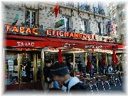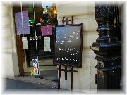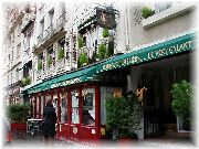 | 典型的なブラッスリーの店構え。開店前の静かな時。 | たいがい入り口に黒板などでメニューを表示しており、その日の定食(プラ・デ・ジュール)がおすすめ。 | アパートの近くのいつも賑わっていたカフェ。メトロconvention駅の前。 | クリニャンクール蚤の市に行ったときに立ち寄ったブラッスリー。 |