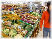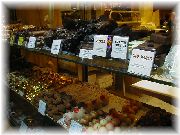| ここも有名なお菓子屋のカールトン。 | お菓子屋に入ると何か買ってしまうので、カロリー消費せねば。 | 近所のスーパーの野菜売り場。とても新鮮でしたが、日本の方が種類はあります。 | スーパーにはさまざまな種類の魚も売られていました。 |