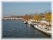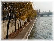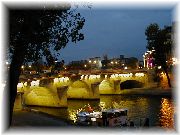 | 街のど真ん中にこんな広い川があるので、橋はさぞ渋滞するんだろうと思いがちですが、さほどでもないんです。 | 私の朝のジョギングコースのひとつです。 | 川沿いの一部には絵画や古本などを売っています。散歩しながら眺めるのも楽しいです。 | 夕方薄暗くなると、仕事を終えた人々と観光者でとても賑わってきます。タイミングよく橋にはイルミネーションに明かりが灯ります。 |