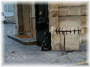 | 建物の入り口によく見られるこれは何だかお分かりですか? | 入り口の左右にひとつずつあります。 | とても様々な形があるのです。いろんな種類を眺めて歩くのも楽しい。 | つまりこれらは昔馬車が通る際に入り口の壁をこすって傷めないように、壁からある程度の間隔を保つためのものなのです。 |