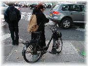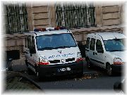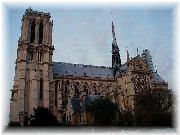 | このパリジェンヌが乗っていた自転車は、前輪に駆動ユニットが付いたいわゆる骨董アシスト自転車でした。 | ノートルダム寺院を正面から見ました。やっぱり観光者が多かった。 | ノートルダム寺院を横から眺めました。パリの大工さんはえらい! | パリを走るパトカーや救急車などは、一般の運転手がルームミラーで見たときに見やすいように、文字が逆さまにペイントしてあります。 |