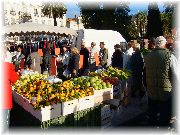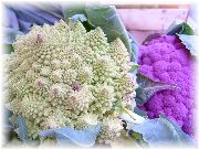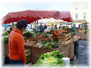| カラフルなカリフラワーです。ガルニチュールには重宝しそうな野菜。今度種買って畑にまこうかな。 | 日本で売られているエンダイブとはかなり違い、非常にワイルド、味もしっかりしていそうです。これぞフランス料理の食材! | フランスにも大型スーパーはあるにはありますが、野菜を買うんだったらマルシェのほうが何倍か価値があります。新鮮!安い!種類が多い!おまけに売り子の顔がわかる。 | これはイエールのマルシェ。1つのブースが尋常でない行列が出来ていた。うーん、他と比べかなり安い。我々も果物をたくさん買ってしまった。 |