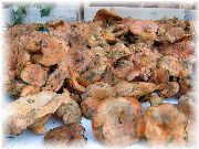 | ガイドブックなどでプロヴァンス名物のお菓子とよく紹介されている。ナイフで切ってくるくると巻いて紙に包んでくれます。味は・・・、素朴です。 | たくさんのキノコです。これは見たこと無いです。 | フランス料理で非常に良く使われるセップ茸です。良い香りです。 | これもキノコですが、どういう使い方をするのでしょうか。 |