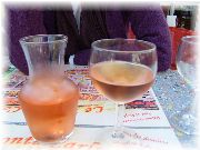 | ここはニースのレストランですので、イタリアに近い。と言うことはイタリアンの匂いがあちこちに。イタリアで食べたものよりおいしいぞ! | りんごのコンポートシナモンがけだったかな?日本のレストランでありがちなお菓子屋のデザートではなくレストランのデザートで、満足。 | ここはイエールのレストラン。お昼なのでオープンテラスでまずはロゼを注文。こんなかわいいデカンタサイズもあります。地中海性気候には屋外でワインが合いますね。 | リブロースのソテーこってり系の生クリームのソース(これがまた美味いんだ!)。付け合せのポテトもしっかりと味付けされ、GOOD。 |