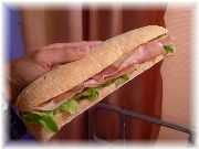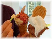 | ニースのショコラティエ(チョコレート屋さん)。これも迷う。徹底的に食うぞー。 | 11月なのに昼間は結構暑さを感じます。アイスクリームもやはり美味いね。ついつい買ってしまいます。 | フランスのサンドイッチは決して食パンに挟みません。バゲットやこんなパンに挟んでいます。パンの香ばしさも楽しみます。シンプルでおいしい。 | イエールの街のスーパーマーケットの野菜売り場です。どんなもんか見に来ました。野菜は出来ればスーパーよりマルシェがいいですね。 |