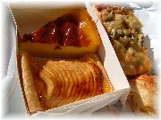 | サラダニソワーズ(ニース風サラダ)です。びすとろまほうの家でも時々お出ししています。 | いわゆるオムレツ。れっきとしたフランス料理です。 | ビーフのグリル。付け合せはポテトフライ。カフェぐらいですとこんな野暮ったい(?)付け合せによく出くわします。日本のフランス料理レストランでは絶対にないですね。 | プロヴァンスのパティスリーでおやつを買います。種類があまりにも多くて困ります。 |