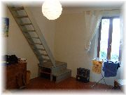 | ニースからイエールに移動し、残りの日程はここにずっと滞在します。ホテルではなくアパートなので気が楽で、地元の人と同じような目線で過ごせるので面白いです。2Fのこの部屋はLDKです。 | 1Fは寝室とバスルームがあります。アパートの大家さんは日本がお好きな方で、日本のと同じ様なバスタブでした。ラッキー。 | この階段で2Fに行けます。旧市街地の中のアパートなので建物としましては相当古いものですが(恐らく築ウン百年)、中はリフォームされてモダンでとても綺麗でした。 | このちょっとしたオープンテラスのスペースが非常によかったです。日本の一般的なマンションのベランダの方が広いのに、なぜここはこんなに心地良いんだろう? |