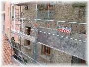 | 「何が食べたい?」と聞かれましたので「伝統的なプロヴァンス料理お願いできますか?」と答えたら、写真の料理が出てきました。ブロケットとプロヴァンス野菜たっぷりのキッシュ、それにパプリカのマリネを添えて。 | デザートですが、これもとても甘くておいしかったー。是非作ってみたいと思いました。名前はすいませんが忘れました。作り方はメモしました。 | ブロケットはなんと薪オーブンで調理したものです。フランスでは(特にプロヴァンスでは)薪は貴重なんだろうなあ。もっとも日本でもそうですがね。 | 隣の建物が何とリフォーム中でして、今回の石積みの家調査隊としましては貴重なものを見ることが出来ました。本場フランスの左官職人の仕事ぶりを、目の当たりに見ることが出来ました。 |