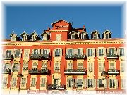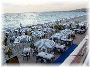 | 砂浜のレストランです。さすがニース。日本では保健所等でまず無理でしょうね。一度入ってみたい(屋外なので入るはおかしいか)です。 | いかにもニースっぽい建物。人々の陽気さが伝わってくるようです。ニースからモナコはすぐで、その向こうはイタリアですからね。 | 来月がクリスマスということで、街にはデコレーションの準備が着々とされておりました。11月なのに通りには人が多いなあ。新宿とまではいきませんが、吉祥寺くらいですかね。 | 坂や階段があり、パリのモンマルトルあたりや、サンフランシスコにちょっと似ている気がしました。 |