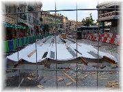 | 今日はエズ村に行きます。バス停はこっちだったかな?旧市街地の近くに大きなバスターミナルがあり、ここから空港や長距離の移動に利用できます。 | 大きなクルーザーが所狭しと並んでいる入り江です。 | ニースの街中を列車を通す様で、線路を設置する工事が急ピッチで行われておりました。こんな大都会の中心街に電車をひくなんて、思い切ったね。 | 相変わらずどこへ行っても走っているおじさんです。夏はほとんどトレーニング出来ませんので、秋に集中して体を鍛えます。もちろん冬に備えてね! |