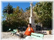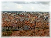 | 私達の住む車山周辺でよく見られる「マムシソウ」にそっくりな植物がこんな暖かいところに生えているなんて!びっくりします。 | ブーゲンビリアだったかな?フェンスから元気良くはみ出していました。プロヴァンスでのよくある光景です。 | 旧市街地にある教会の広場から旧市街地を見下ろした風景です。屋根の色はすべてオレンジで統一され、街の景観を美しくしています。 | ここは美しい海岸線を持つジアン半島の先っぽです。空が真っ青でまぶしい太陽がプロヴァンスですね。近くのブーランジェリーでパンを買い、ベンチでランチとしました。 |