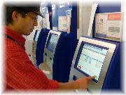 | ニースからイエールまでの長距離高速バスの中です。ゆったりしていてとても快適でした。 | 車窓にはブドウ畑が。さすがワインの最大生産地フランスです。 | カンヌ映画祭でよく知られる、カンヌの町です。知られている割にはとても小さな、静かな町という印象でした。 | 近頃は航空チケットがありません。ペーパーレスです。こうしてタッチパネルでチェックインします。 |