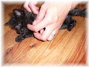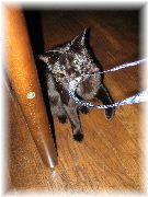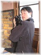 | ひも状のものを見せると必ずじゃれます。お客さんのカメラストラップにかみつく。もう1歳5ヶ月となりました。 | わんぱく、いたずら好きのぷま。何かたくらんでいる様子。 | あれ?また見知らぬ人だ。ちょっかい出しちゃおうかな。 | お客さんに抱かれ、静かにしているぷま。また遊びに来てね。 |