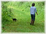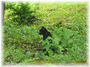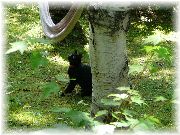 | ちょっとくたびれた、けど昆虫が気になる様子。 | 我々にいいとこを見せようと、木に登る。まるで黒ヒョウです。 | じっとこちらを見て、「どうだ!」と言わんばかり。でかした、でかした。 | おまけ画像です。うちの近くで今ウバユリが立派な花を付け、我々の目を楽しませてくれています。 |