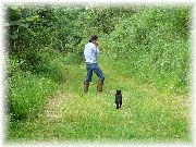 | お昼寝中です。よほど遊びつかれたのか、すごい寝相。 | 散歩の時もジョギングをするときでもついて来てしまうぷま。でも周りの動くものにとても敏感に反応しています。 | トンボや蝶を追いかけています。 | おっ、この顔は何か見つけましたね。 |