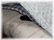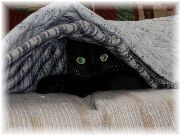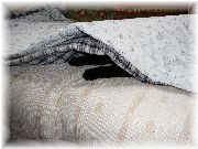 | この青い紙袋が今晩のベッドのようです。なかなか出ようとしません。いないな、と思い袋に手を突っ込んだら、底のほうで寝ていました。 | 普段はわんぱくな小僧も、何故かこの日はうっとりとしていたように思います。 |