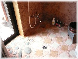 | 五右衛門風呂の浴槽は露天ですが、洗い場は屋内です。まずはお体を洗ってからご利用下さい。五右衛門風呂はお湯が冷めるまでのご利用ですが、洗い場はいつでもご利用可能でございます。 | ![]() |