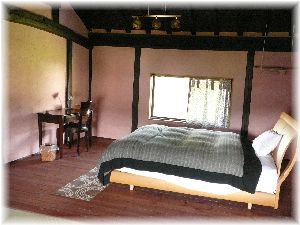 | maison d'hotes 農の家は更なる快適空間創りを目指し、今まで体験したことのない”落ち着ける非日常空間”をテーマに、まずは大きな古民家を素材にして居住空間を創ってみました(”住”)。この世に2本と無い曲がった丸太を豪快に組んだその力強い美しさをご堪能下さい。まだまだこれからも小さな改修作業は続きますが、それに加え今後は更なる快適空間に欠かせない”食”としてのナチュラルガーデン創りも頑張って進めて行きます。 |