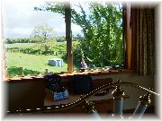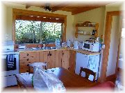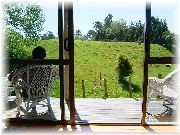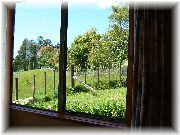 | キッチンです。このコテージは実は古い村の学校だった建物を移築したものなんです。ですのでリビングに大きな黒板があったり、面白い。 | 窓枠、ドアなどの建具も古くて渋い雰囲気をかもし出しています。ここも窓から見えるのはすべて緑の牧場のみ。 | 今までのB&Bとはちょっと異なる、これはこれで満足な宿でした。赤道に少し近づいた分、室内の雰囲気も陽気ですね。 | 道沿いにこの看板が出ております。VACANCYの表示が出ていたら、空きということですので、早速交渉しましょう。 |