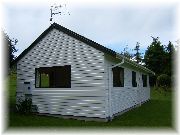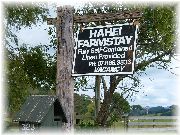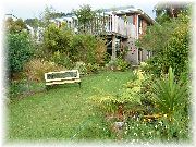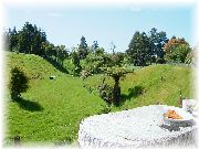 | ニュージーランドの宿はオール電化でしたが、200Vですのでパワーが違います。地熱発電でかなり賄えているようです。うらやましい。 | この看板「ARAHEKE COTTAGE」が目印です。派手に宣伝しない控えめな隠れ宿です。こんな宿が目標です。びすとろまほうの家にこの宿のパンフがございます。 | 4番目の滞在地は温泉地ロトルアのちょっとはずれのOKAREKA湖畔にある「LYONS LAKE STAY」という宿です。家族経営で奥さんが庭で家庭菜園をやられております。 | 庭の一角に家庭菜園のコーナーがありました。なだらかな斜面に建物が建っています。 |