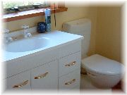| ベッドルームもコンパクトで使いやすく、熟睡できました。ベッドルームの窓からの風景も素晴らしかった。車山以上に静かかもしれませんね。 | これがベッドルームの窓。目覚めると毎日こんな景色だなんて、究極の贅沢。 | トイレ、洗面周り。とても清潔で快適でした。ここのオーナーはかなりのこだわり人とみた。 | ニュープリモスの巨大スーパーまで車で15分程度ですので(100キロ以上で飛ばすけど)、買い物にも便利。種類豊富な食材を買って、コテージで調理するのも楽しいよ! |