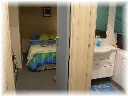 | 庭はまあまあ広く、それなりには寛げます。エグモント村から一気にここまでドライブしたので、じっくりと宿を探す時間がありませんでした。ここは1泊でいいかな。 | 庭のテーブルで今日の予定を立てたり、ボーっとするのも良い。 | 共同のキッチン。部屋数は確か3つ。この日はNZの男子学生が一人で長期滞在中でした。地質学を研究しているそうです。そうか、確かにこのあたりは昔からの温泉療養地でもあり面白そうです。 | 左が我々のベッドルーム、右がバスルームです。プライベートスペースが少ないので、すいませんが明日は旅立ちます。 |