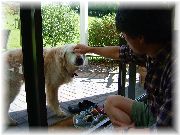 | ここのオーナーはヒツジを飼っています。近日中の羊毛の刈り取り作業のため、一箇所に集められています。「やってみるか?」と言われました。 | コテージのまん前にある水のみ場に来た子羊。ちょこちょこと動きが速いのでこのショット中々撮れませんでした。 | 犬も2匹います。特にこのレトリバーは人懐っこかった。犬好きのカミさんははしゃいでいました。 | 夕方にロトルア湖畔を軽くジョギングし、まだまだ明るいので持ってきた本を読みました。全く自由な気ままな旅です。 |
