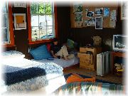 | エアコンを使わない山の空気だけでお休み下さい。ベッドに寝転がりますとこんな風景が・・・。 | ![]() |