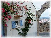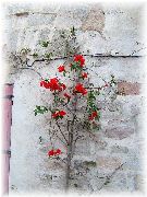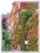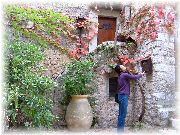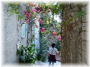 | 古い石壁にはツタやツルバラ、ブーゲンビリアなどが絡まっています。これなら庭がなくてもガーデニングが楽しめると思いました。皆さんも参考にされてください。 | これもイエールの旧市街地の一角です。緩やかに曲がった通り沿いの鉢植えなどが美しいです。良い感じでしょ! | これも古い壁にツルバラを這わせています。実に絵になる被写体が、街全体を多い尽くしています。どこにカメラを向けても様になります。 | |