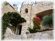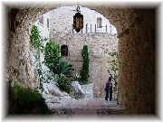 | 石には植物が合うんですねえ。ツタやツルバラが100パーセント映えます。 | ここは有名なシャトーエズホテルです。まさしく「大人の隠れ宿」ですな。正面は極めて静かでしたが、厨房の裏あたりは結構活気があったように見えました。 | 通路にはこういったトンネル状の所もあり、散歩には本当に飽きません。でも車は狭くては入れないので、生活にはちょっと不便でしょう。 | 壁は平面だけでなく、円柱状にもなっており、芸術的な形に感心するのみです。エズ村の紹介は以上です。 |