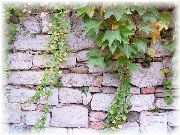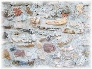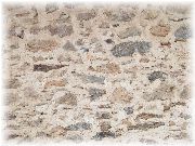 | 肌色〜ベージュっぽい色のモルタルと、複数の色の石の組み合わせで、ポップな感じの壁の表情です。この壁ですと植物が絡まっていなくてもいいのかな。 | 木造と違って石を構造体にするには、ドアや窓のような部分はちょっと工夫が必要です。そのまままっすくに積んだだけでは落ちますね。この様に扇状に加工しておいて、アーチを作れば崩れる心配はありません。 | ツタが上から垂れ下がり、良い感じの壁です。こういう風景は非常に多く見られます。壁としては表からはモルタルが見えず、まるで石を積んだだけのようです。実際には固めているはずですが。 | これまたおもしろい壁です。平べったい石、丸い石、色も様々で、あたかもその場しのぎで積んでいるかのようですが、なぜか芸術的に見えるのはフランスという先入観のせいでしょうか? |