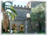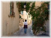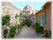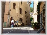 | 岩をうまく利用して建物やオブジェが作られている様子。 | ここからは2番目の滞在地のイエール市という田舎町です。私達はここの旧市街地内のアパートで10日間ほど滞在しましたが、ニースよりうんと静かで、落ち着きがあってとても気に入りました。 | 旧市街地は結構広くて、やはり中心にシャトーがそびえています。シャトー周辺は公園のようにきれいに整備されており、格好の散歩・ジョギングコースです。 | ここもエズ村のように坂が多くて、探検的な散歩をするには楽しいところでした。ニースの旧市街地は海岸沿いということで平地ですが、適当な坂はいいものです。 |